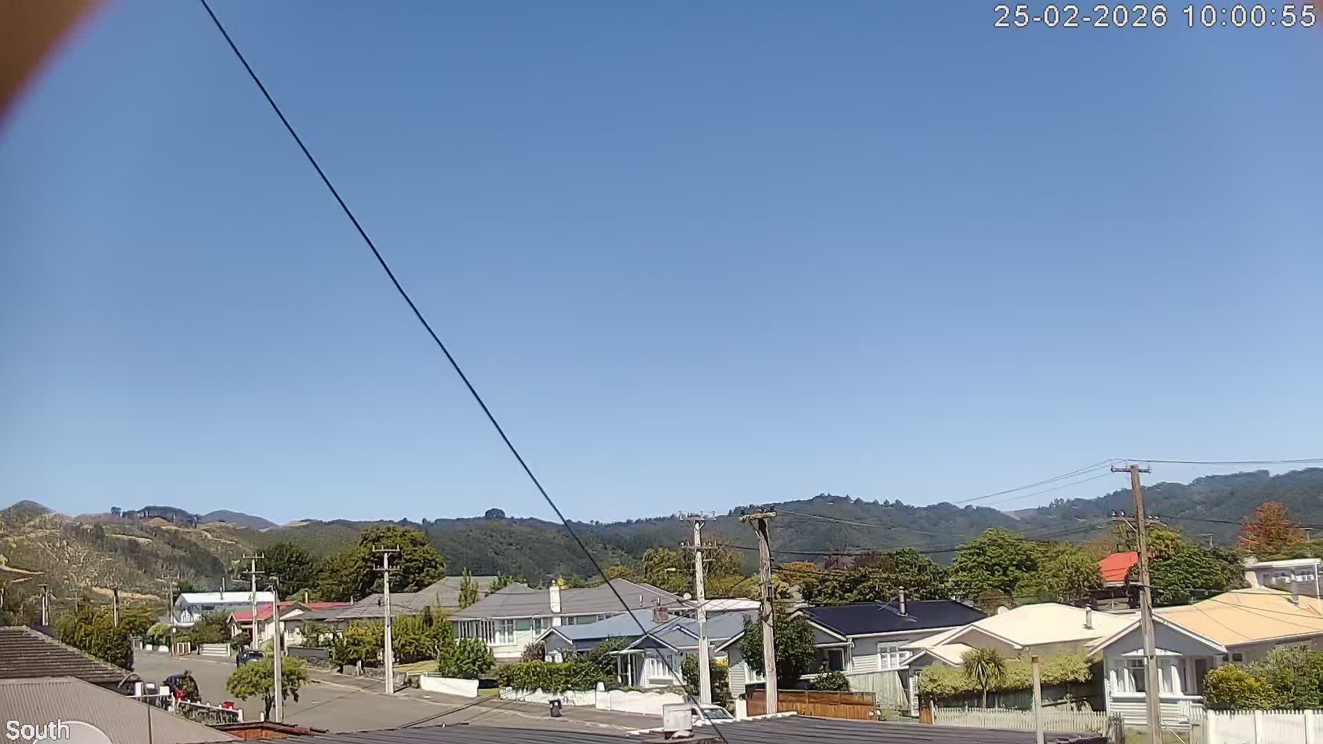Looking approximately South. Trentham Range is about between the center and next-left streetlight power poles.